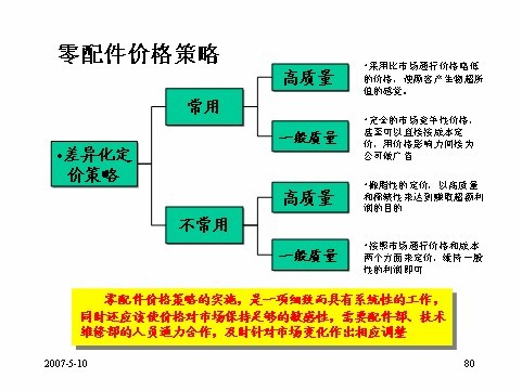 在通过零配件价格制定的竞争性和赢利性模型进行分析之后,具体的零配件价格策略如下图所示: