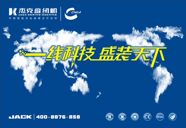 “一线科技”既表示一流、领先、顶尖、顶级,也表示一针一线的缝纫技术,不仅能阐释缝制行业属性,更能传达杰克科技领先的意境;“盛装天下”则既表示杰克缝纫机以完美的设计、精良的技术、不懈的追求成就顶级的服装品牌,也与杰克“为客户提供性价比最优的缝制设备和服务,为人类缝制新文化作出卓越贡献”的企业使命完美吻合,杰克的持续发展离不开服装行业的支持与发展,杰克也必将为服装行业的发展作出自己的贡献。