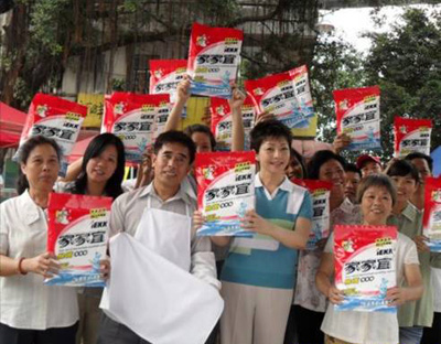 家家宜的目标群体主要是广大的农村消费者。他们的收入有限,对价格的敏感程度比较高,期待在尽可能的“廉价”基础上,尽可能的“物美”(或者“物多”)。由此,家家宜战略性地将洗衣粉与“脸盆”相结合,采取“1+1”的形式,迅速铺开三四级市场。