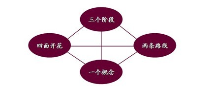 2、品牌传播升级:一个概念、两条线路、三个阶段、四面开展