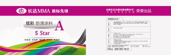 ②醒目更生动——多种色彩以供选择;具备独特的抗污性能,以及卓越的反光性能;常规标线涂料不仅有白色、黄色,更有可供满足机场路面使用的黑色、红色;彩色防滑路面更可提供黄、红、蓝、绿等各种色彩可供选择,给人带来耳目一新的视觉感受。