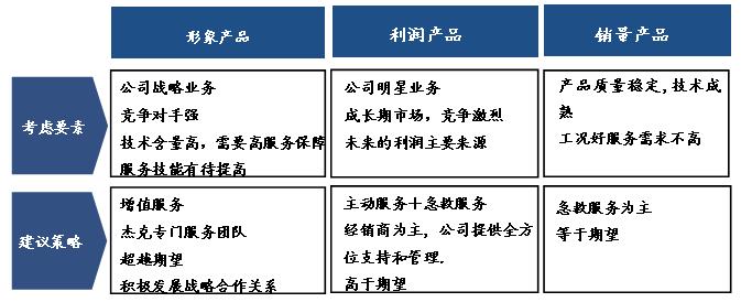 根据 “一品一案”原则,针对不同产品制定不同的服务政策,一方面保证销量产品成熟 退期业务客户满意度不断提高,另一方面,保证利润产品的销量快速扩张.