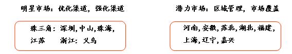 渠道管理精细化。由于过去采取销售导向的政策,而相应的提高销售的策略就是加大经销商的开发力度,造成经销商良莠不齐,区域划分不清,难以管理等问题。对目前经销商进行评估,根据实力、意愿、发展潜力等因素确定目前经销商的结构,分为战略合作伙伴、市场专家和被淘汰者三类,并在此基础上提高对经销商的管控和管理能力,建立系统的考核和激励体系,使经销商由坐商向行商转变,并为经销商提供相应的培训,提高经销商自身经营能力和市场开发能力,减少其对公司的过分依赖,鼓励其做大做强。