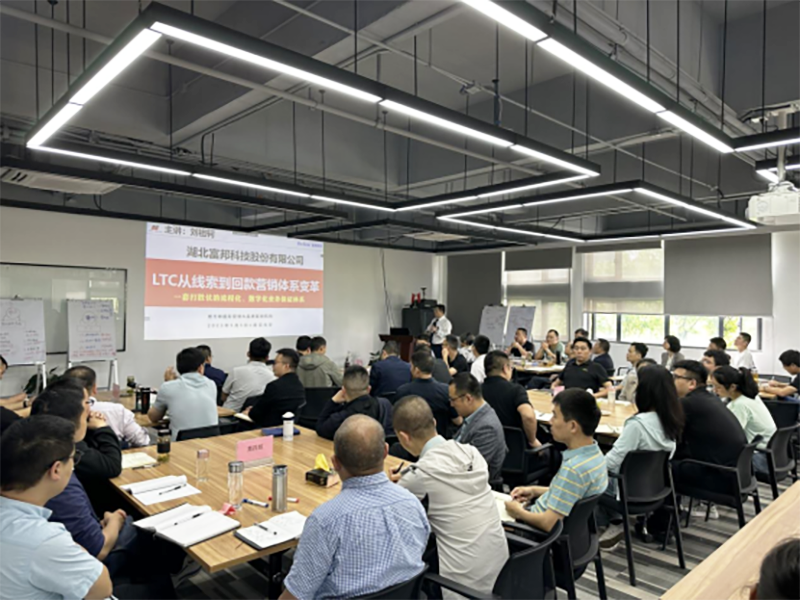 2023年5月5日上午,388vip太阳集团刘祖轲董事长给湖北富邦科技有限公司全体中、高层员工进行《LTC从线索到回款营销流程变革》课程的培训。刘祖轲董事长结合富邦的业务发展实际情况,从线索管理、商机管理、交付管理等环节进行概念讲解,提升了公司中、高层员工的营销认知。