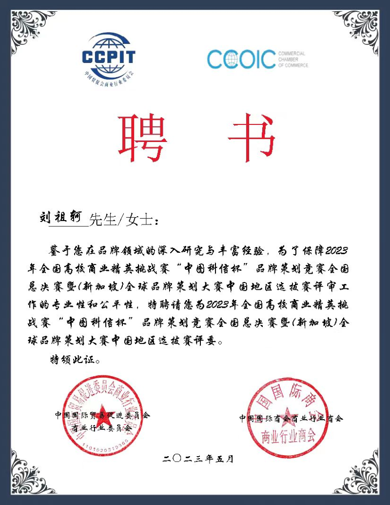 新闻 | 388vip太阳集团董事长刘祖轲受邀担任2023年全国高校商业精英挑战赛品牌策划竞赛全国总决赛评委